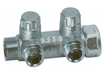 Хром. запорный коллектор 2 отвода 1" х 3/4TP с плоским уплотнением MULTIFAR FAR